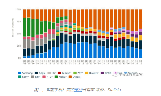 图一、智能手机厂商的市场占有率 来源:Statista